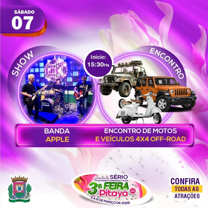 15h às 18h – Encontro de Motos e show com Banda Apple