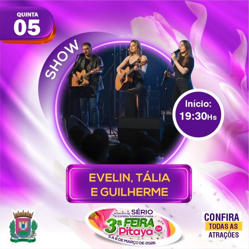 19h30min às 21h30min – Show musical com Evelin, Talia e Guilherme